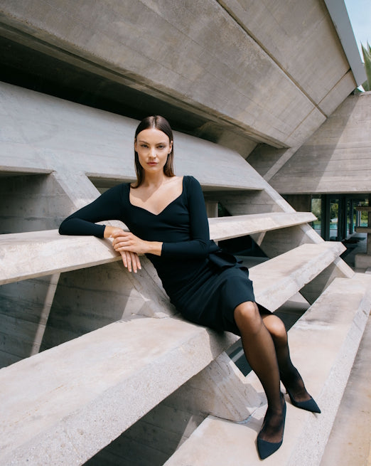 For an office look, the key is elegant minimalism: clean lines, flattering silhouettes, and pieces with enduring charm, such as the The Iconics collection. Black is the perfect foundation for a discreet yet confident women’s total black outfit.