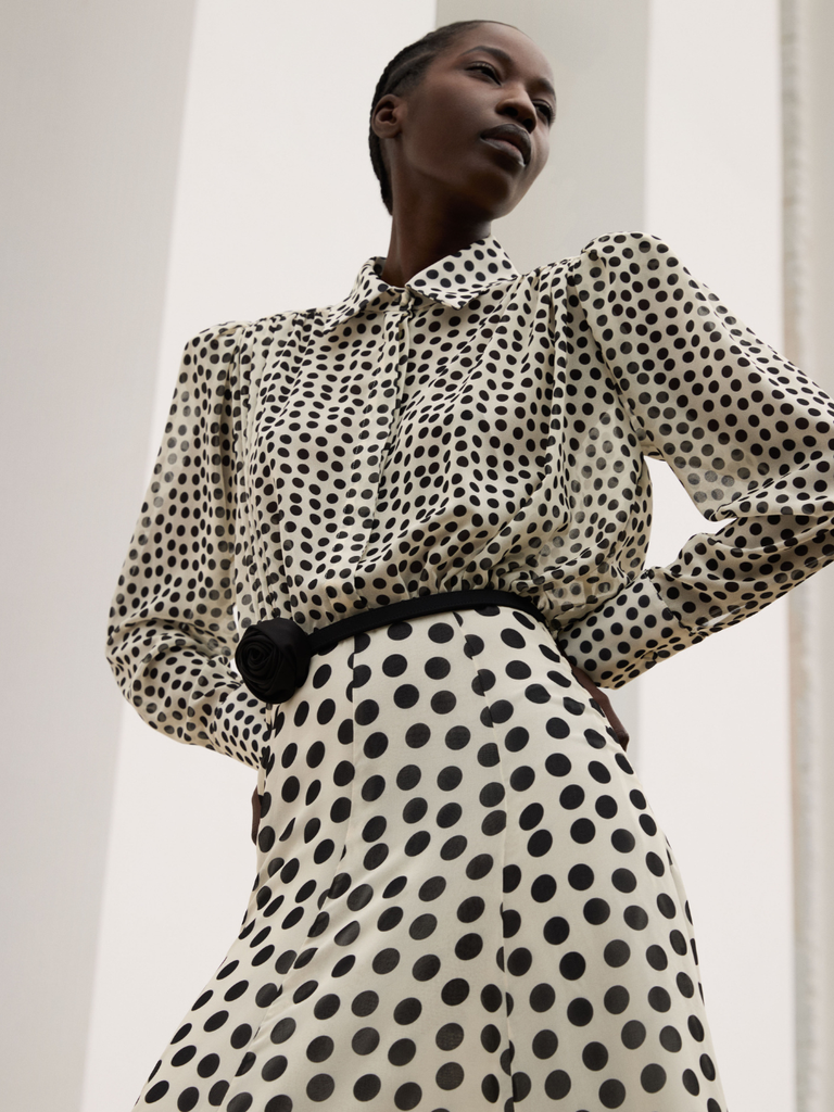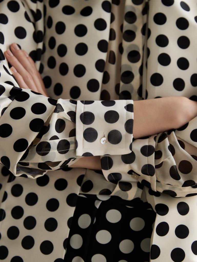 Polka dots are one of the most iconic and timeless patterns in women’s fashion. Playful yet inherently sophisticated, they transcend seasons, constantly reinventing themselves while maintaining a natural dialogue with the contemporary wardrobe.