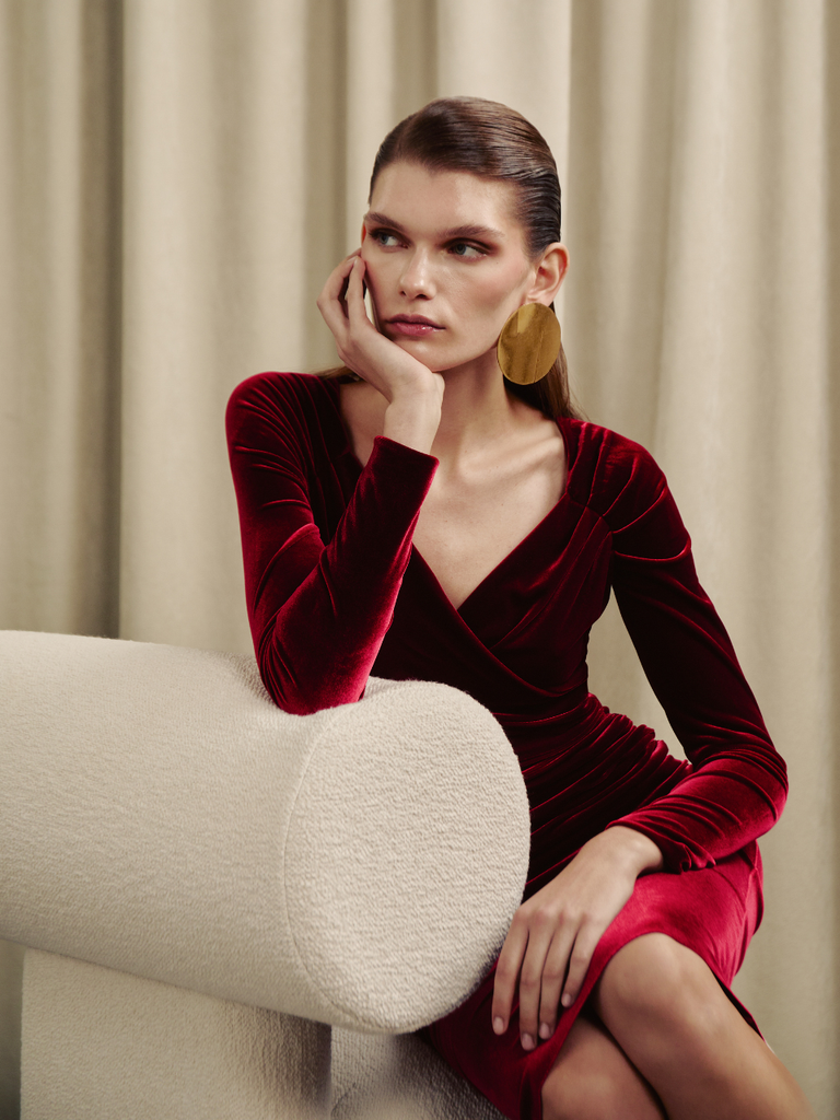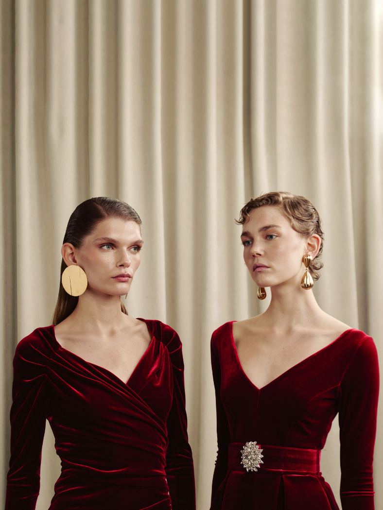 A curated selection that interprets velvet in its most current expression: feminine, bold, and unmistakably couture.Â