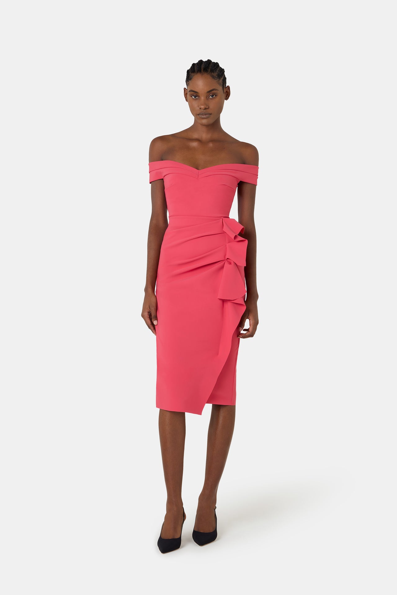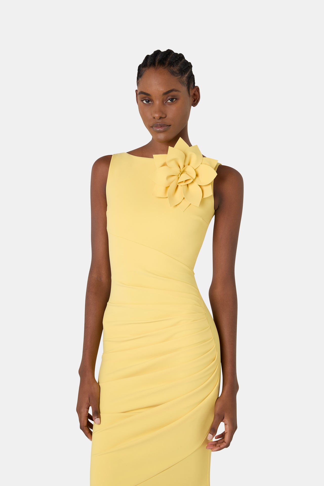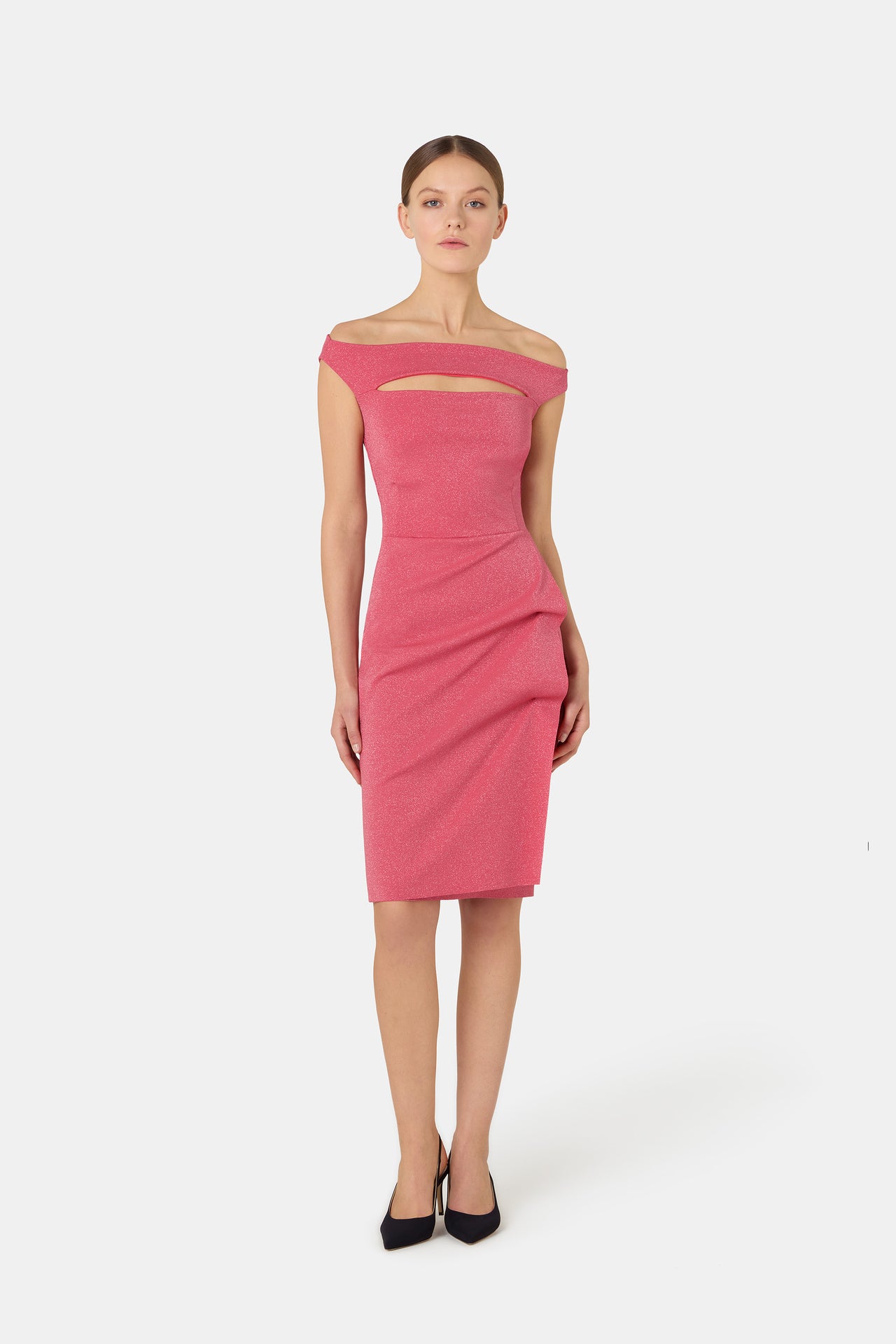 From deep, enveloping, and sophisticated velvet in timeless black or romantic teal blue, a rich, intense texture perfect for winter evenings - to airy printed georgette that moves fluidly with every step. And finally, to the stretch jersey, an iconic hallmark of CHIARA BONI collections, which sculpts the silhouette with precision for an impeccably refined allure.