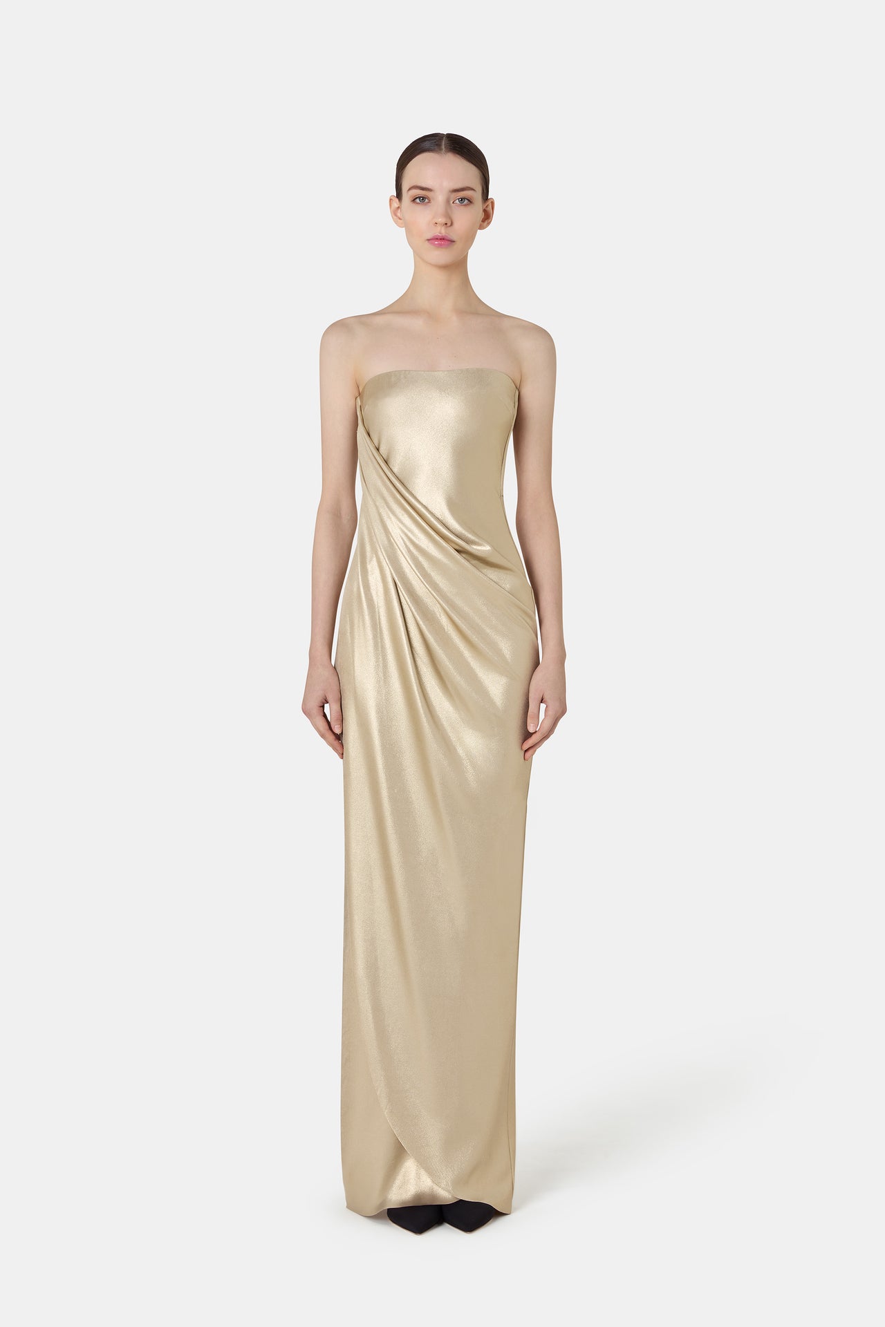 From V-necklines that elongate the silhouette, like the Maco gown, to sweetheart necklines that enhance the décolleté with refined sensuality. From waist draping, seen in the iconic Silvheart dress, which adds fluid movement, to sparkling styles such as the Haby dress, designed to make every look truly irresistible.