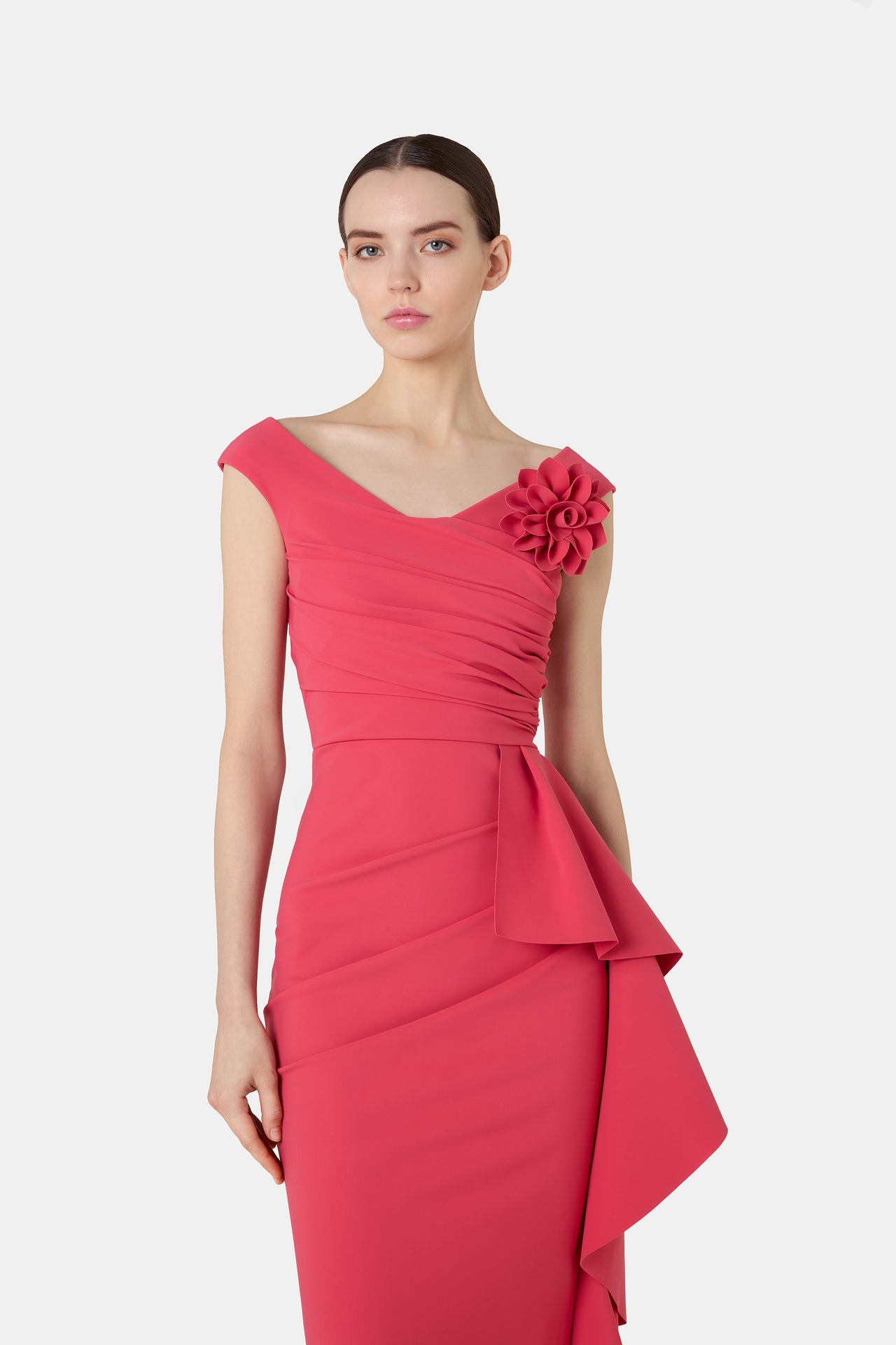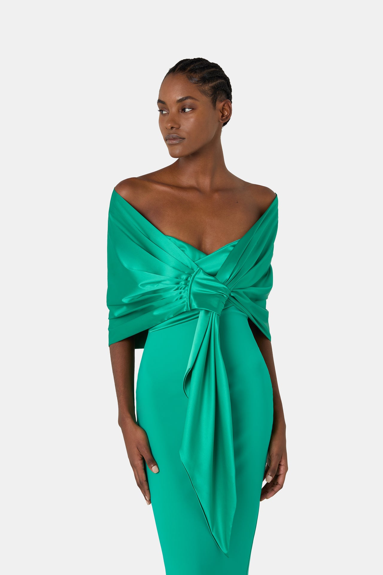 Iconic designs and light-catching details define the ceremonial collection, which reinterprets femininity through a refined, contemporary lens. The Grenawa gown, with its sweetheart neckline and mermaid cut, elongates the figure with measured, ultra-sophisticated femininity. The Sayon dress, featuring a draped waist, sculpts the silhouette to create a perfect, flattering balance. Alongside these sculptural cuts, the collection also includes timeless styles reimagined with a modern twist, such as the Nima gown, with its back V-neckline and jewel details, or the Suli gown, accented with satin touches, an embodiment of modern, impeccably polished elegance.