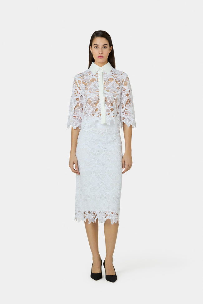 Vintage jewelry influences refined embellishments throughout the collection, with brooches and metallic embroideries illuminating gathered dresses, structured shirts, and graphic gowns. Florals blossom from vivid maxi motifs with yellow highlights to delicate degradé prints on fluid satin, while voluminous taffeta gowns, textured lace, and playful 1940s‑inspired polka dots add depth and couture attitude. Daywear expands with polished cotton suiting, ribbed viscose dresses, and soft cashmere‑silk knits enriched with signature jewelry details. Accessories complete the look: pointed pumps, mules, and slingback flats in matte and metallic jersey—many adorned with removable flowers—alongside the Grace mini bag and the draped Capri clutch, for a confident, contemporary expression of femininity.