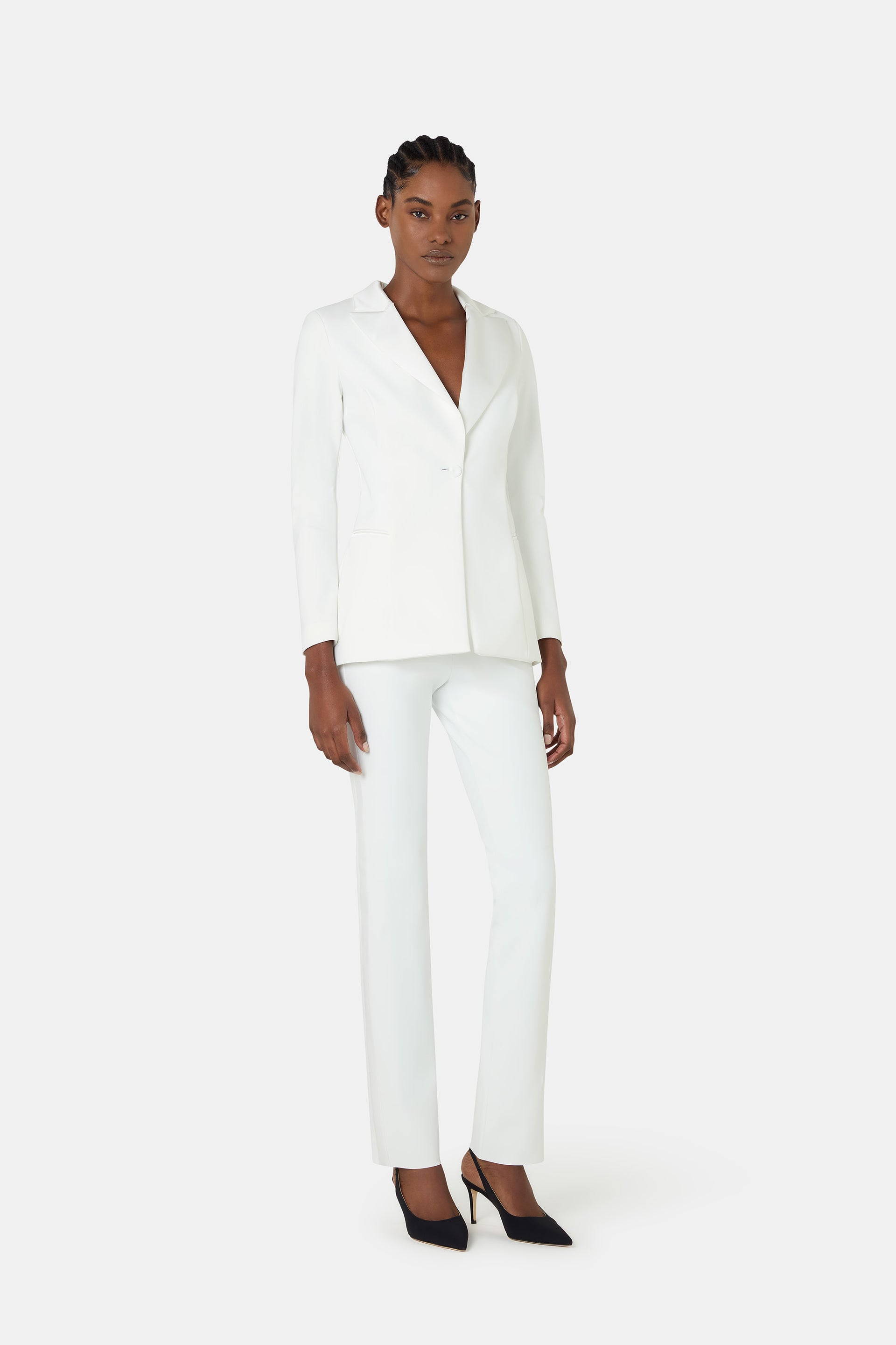 The Alex jacket is the ideal piece for creating feminine and sophisticated looks, thanks to its perfect fit and fine satin lapels. When paired with pants with satin detail, it is an elegant and refined style choice.
