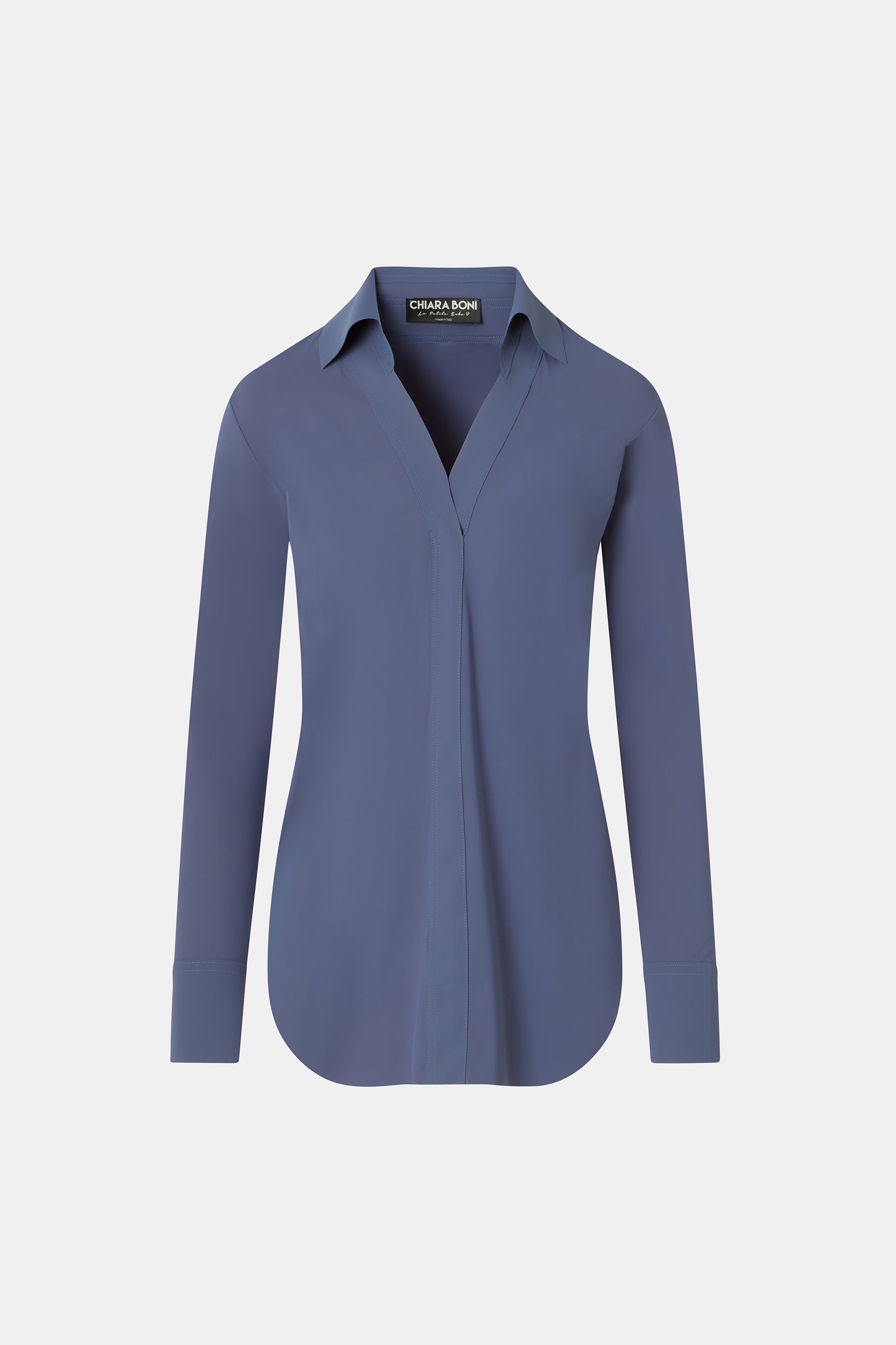An iconic staple from the CHIARA BONI collection. The Atena shirt, now offered in a new slim fit, has a polished design and simple elegance. A go-to for work or leisure.