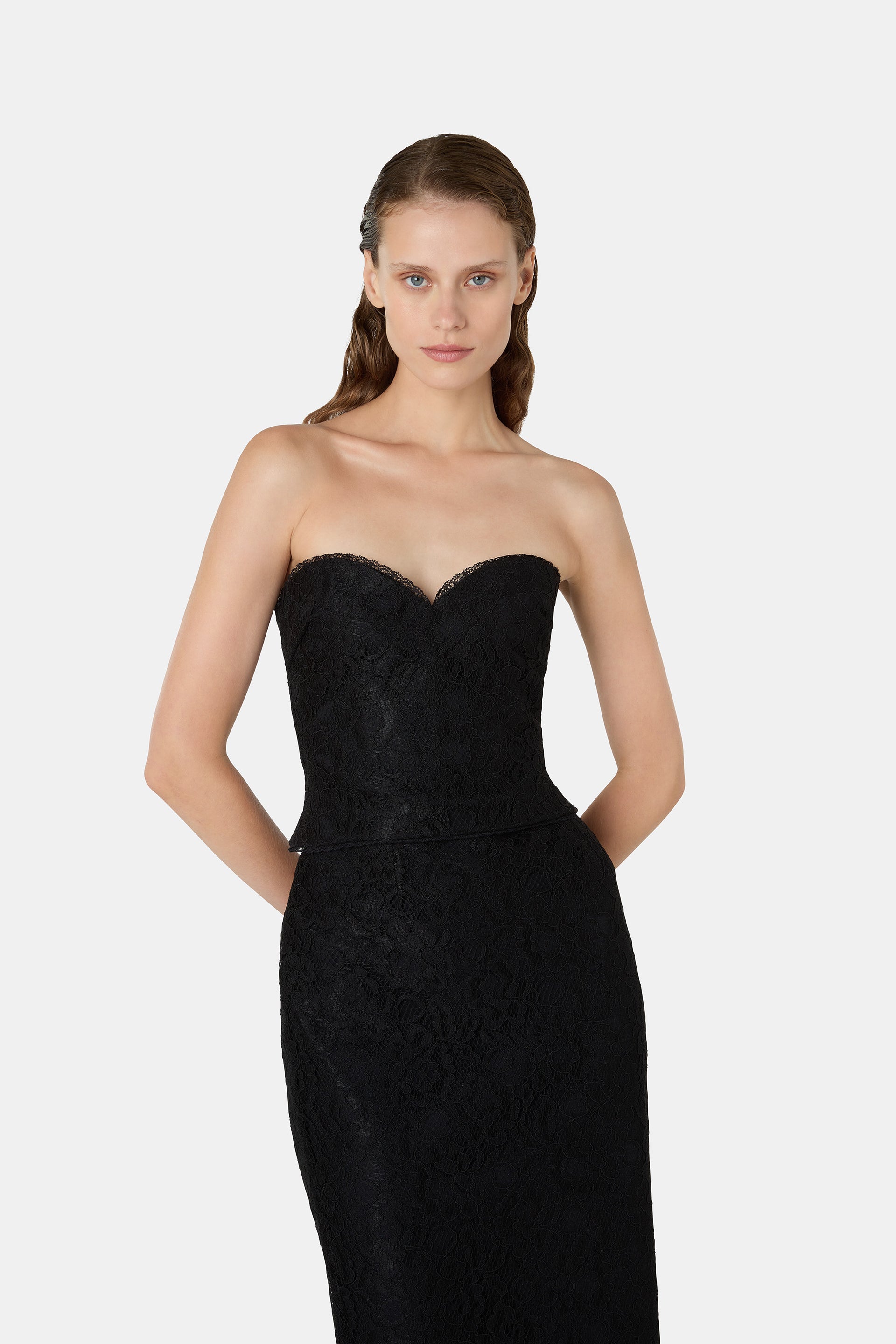 A CHIARA BONI icon reimagined in delicate lace: the Chrystele top features a sweetheart neckline that evokes retro-inspired sensuality with a modern allure.