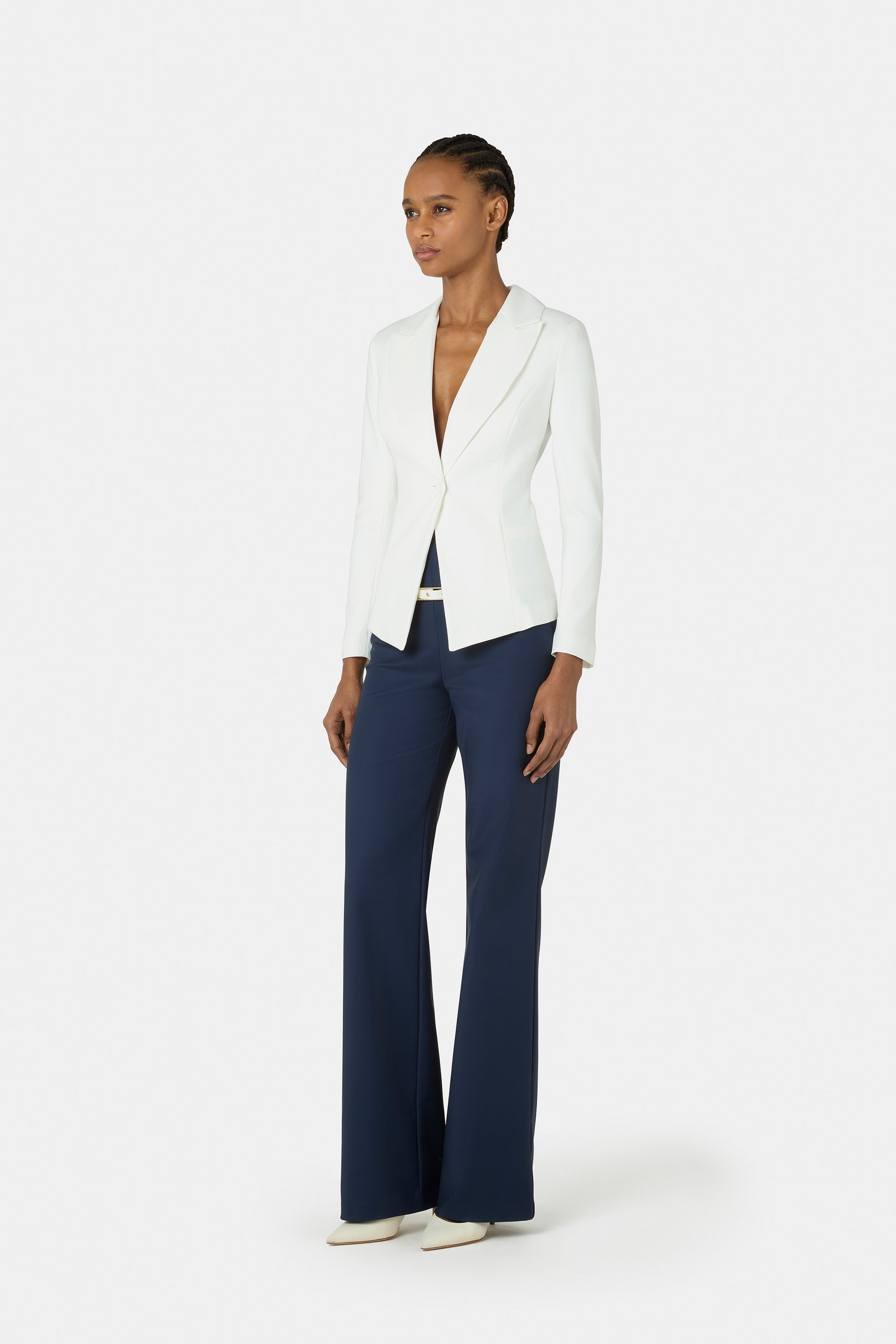 The high-waist Dorota pants with a waist-cinching belt and flared legs, a perfect balance of modernity and retro allure. Fresh, sophisticated, and effortlessly chic, they are the ultimate piece to complete a coordinated look with style and personality.