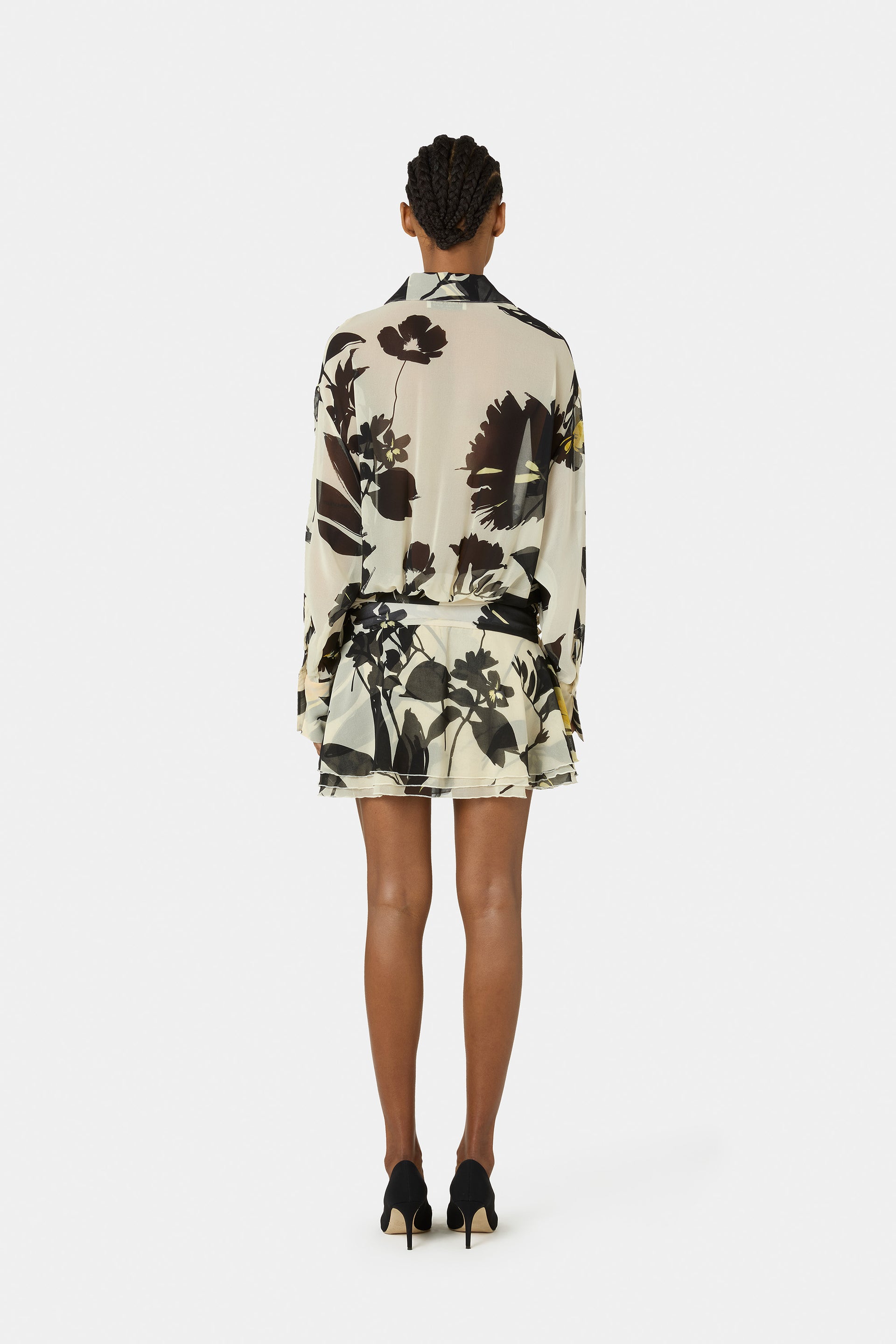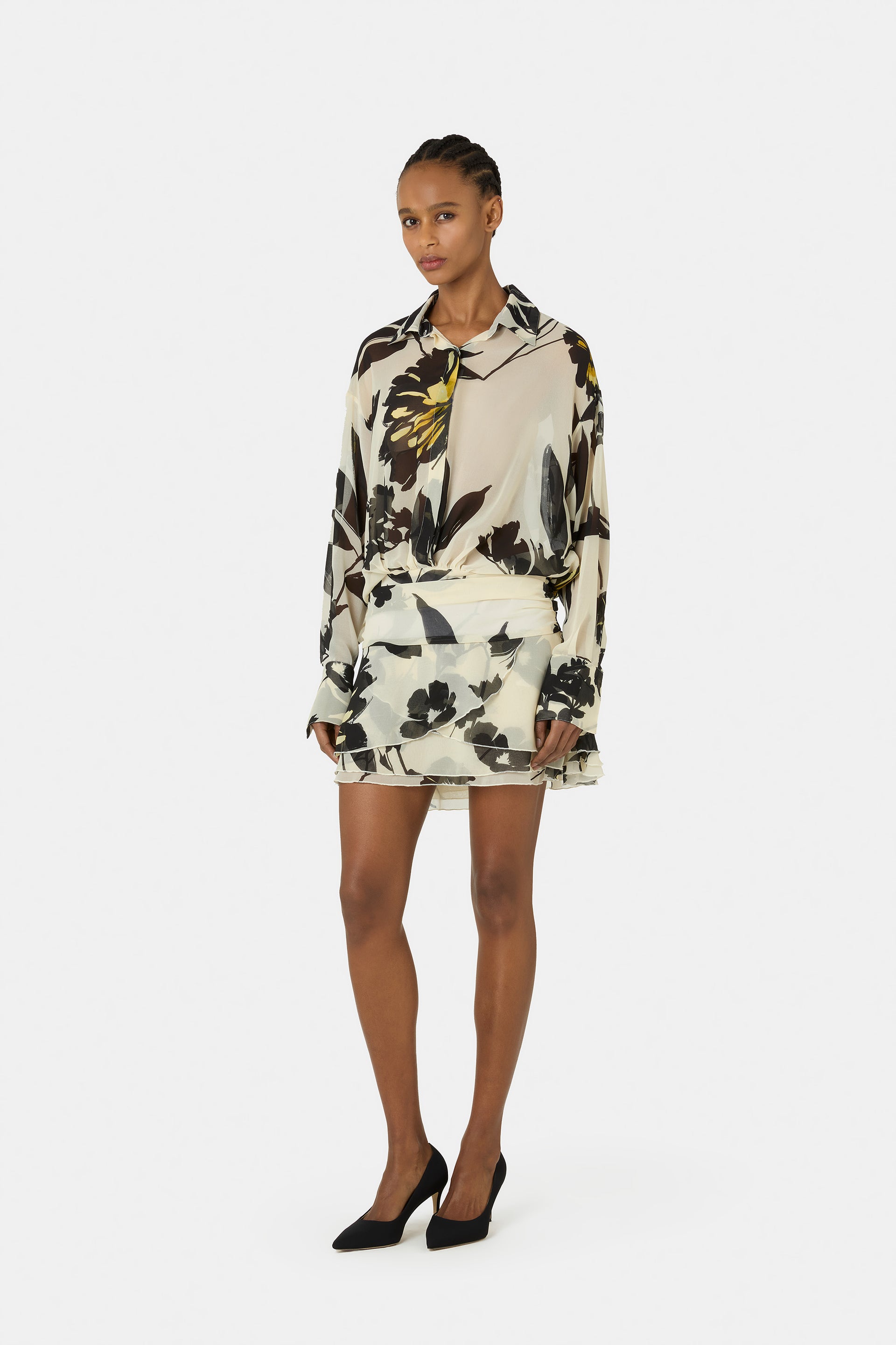 The Esdra dress embodies contemporary elegance with a sense of lightness and character. Fluid lines, long sleeves, and a shirt-style neckline meet a colorful, ultra-feminine print that feels luminous and refined. Glamorous and irresistibly cool, it’s the key look of the spring collection.