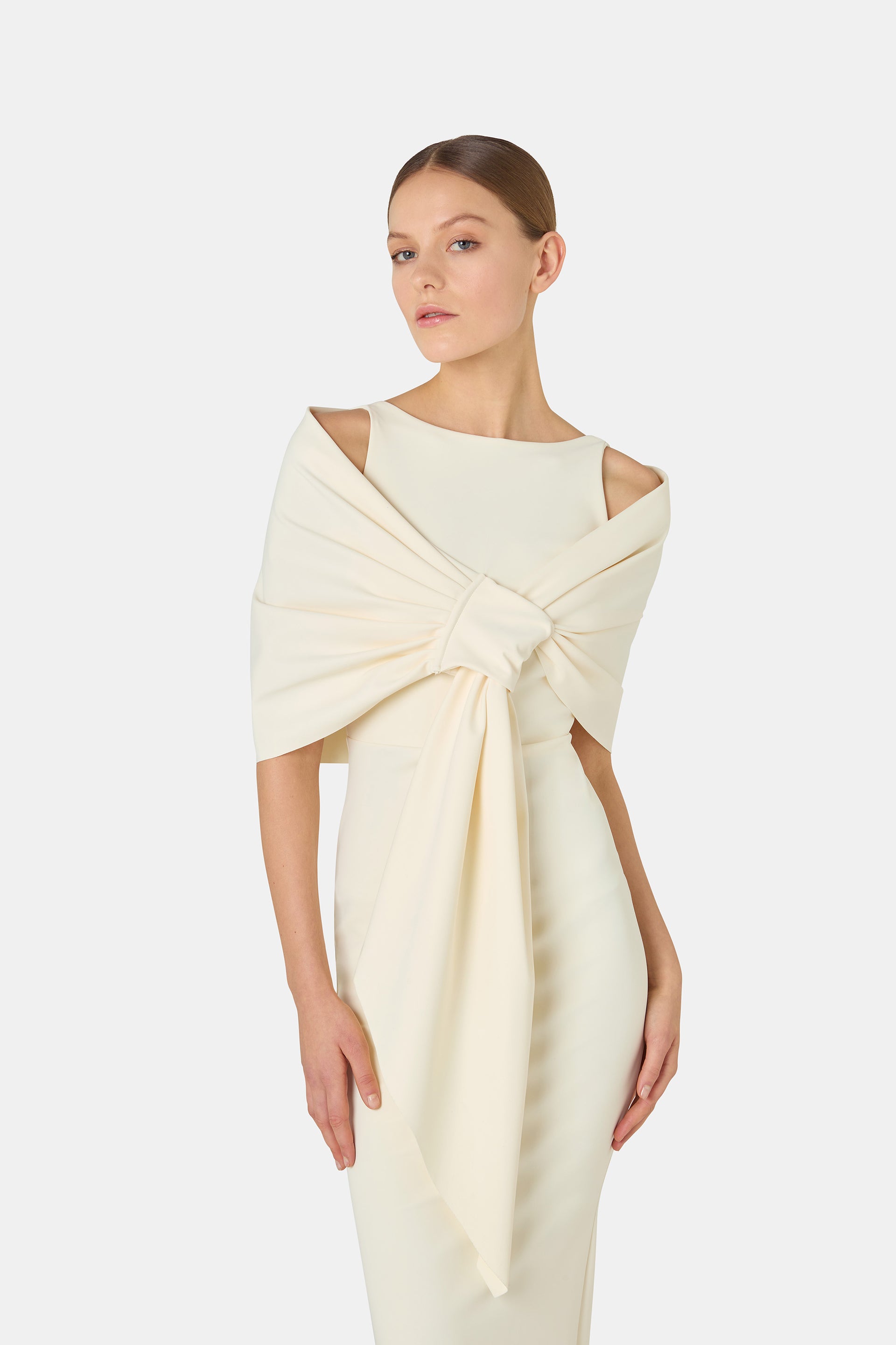 The Eva stole is an accessory that enhances any look. It goes perfectly with any seductive CHIARA BONI dress.
