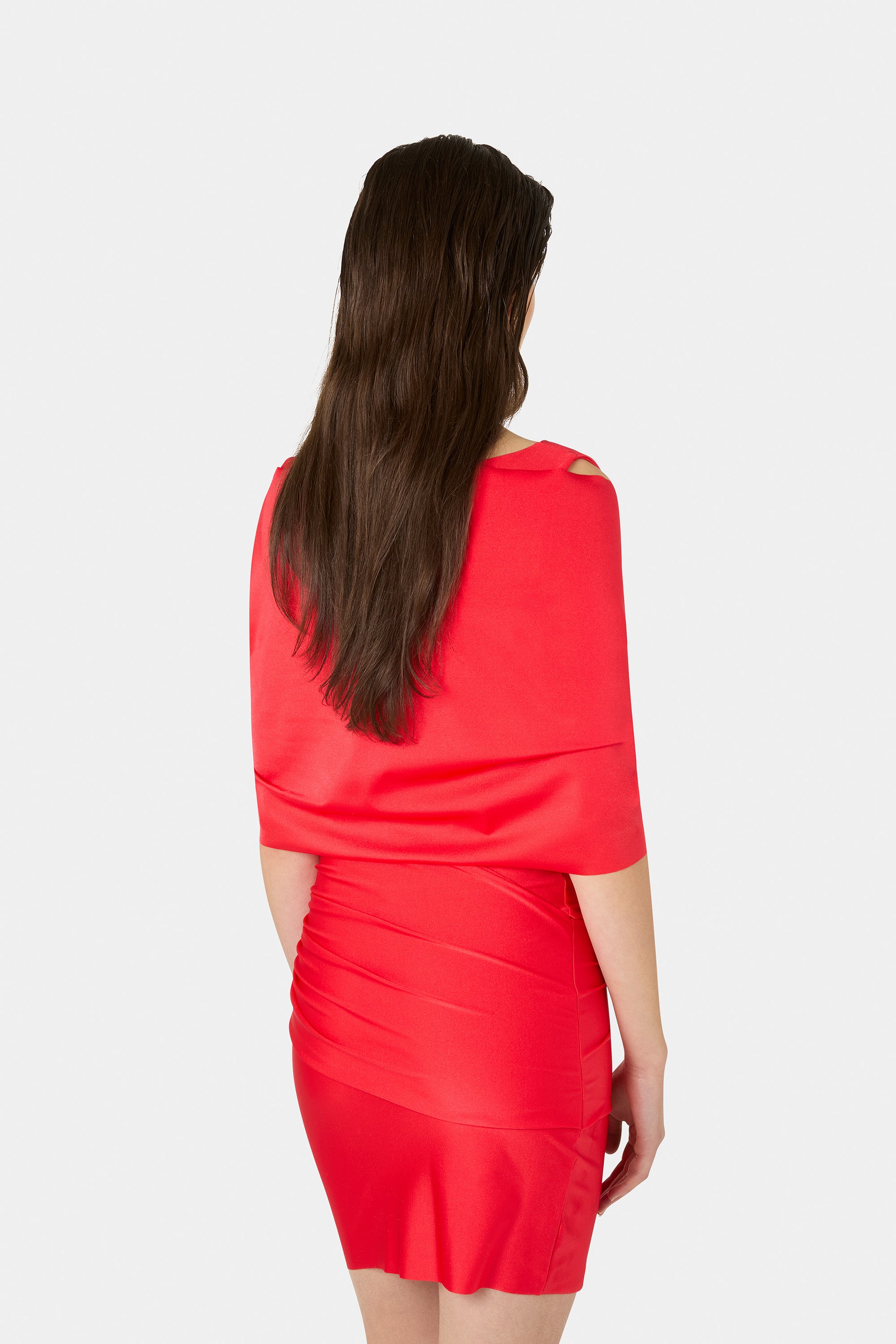 The Spring/Summer 2026 collection looks to Hollywood’s Golden Age, reinterpreting its timeless elegance with a modern and deeply feminine perspective. Essential, enveloping lines meet a palette of delicate shades, while brooches, metallic embroidery, and luminous details evoke vintage jewelry, enriching drapes and graphic silhouettes. A collection that celebrates charm, confidence, and femininity, with a cinematic yet contemporary allure.