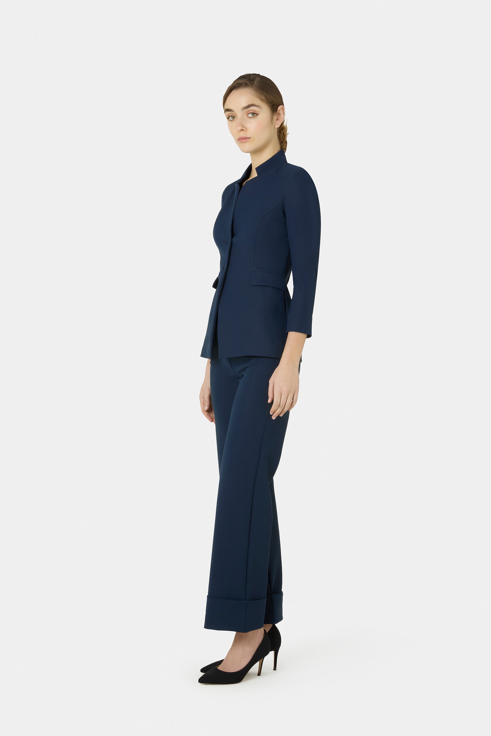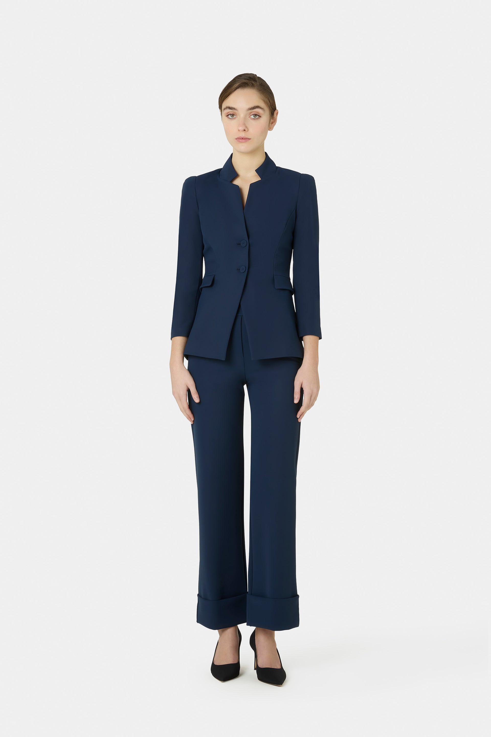 The Hisako jacket transforms the classic blazer into a contemporary statement piece. Paired with matching trousers, the suit feels modern, effortlessly stylish, and undeniably chic.