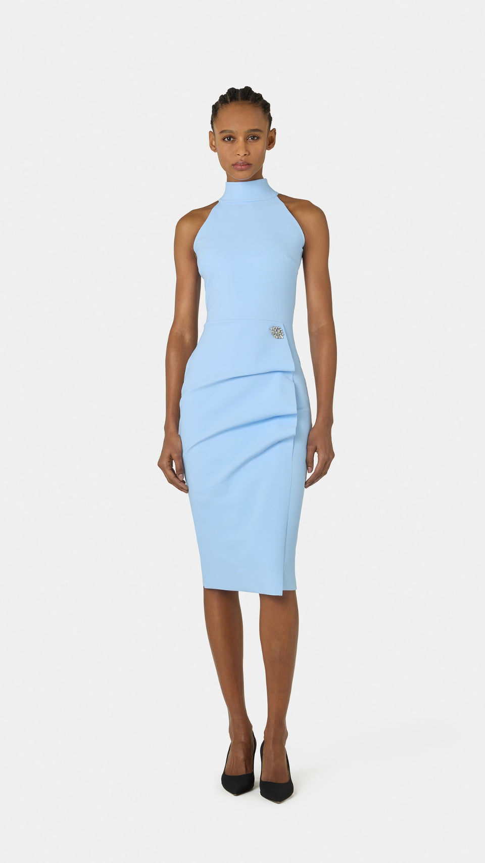 The Spring/Summer 2026 collection looks to Hollywood’s Golden Age, reinterpreting its timeless elegance with a modern and deeply feminine perspective. Essential, enveloping lines meet a palette of delicate shades, while brooches, metallic embroidery, and luminous details evoke vintage jewelry, enriching drapes and graphic silhouettes. A collection that celebrates charm, confidence, and femininity, with a cinematic yet contemporary allure.