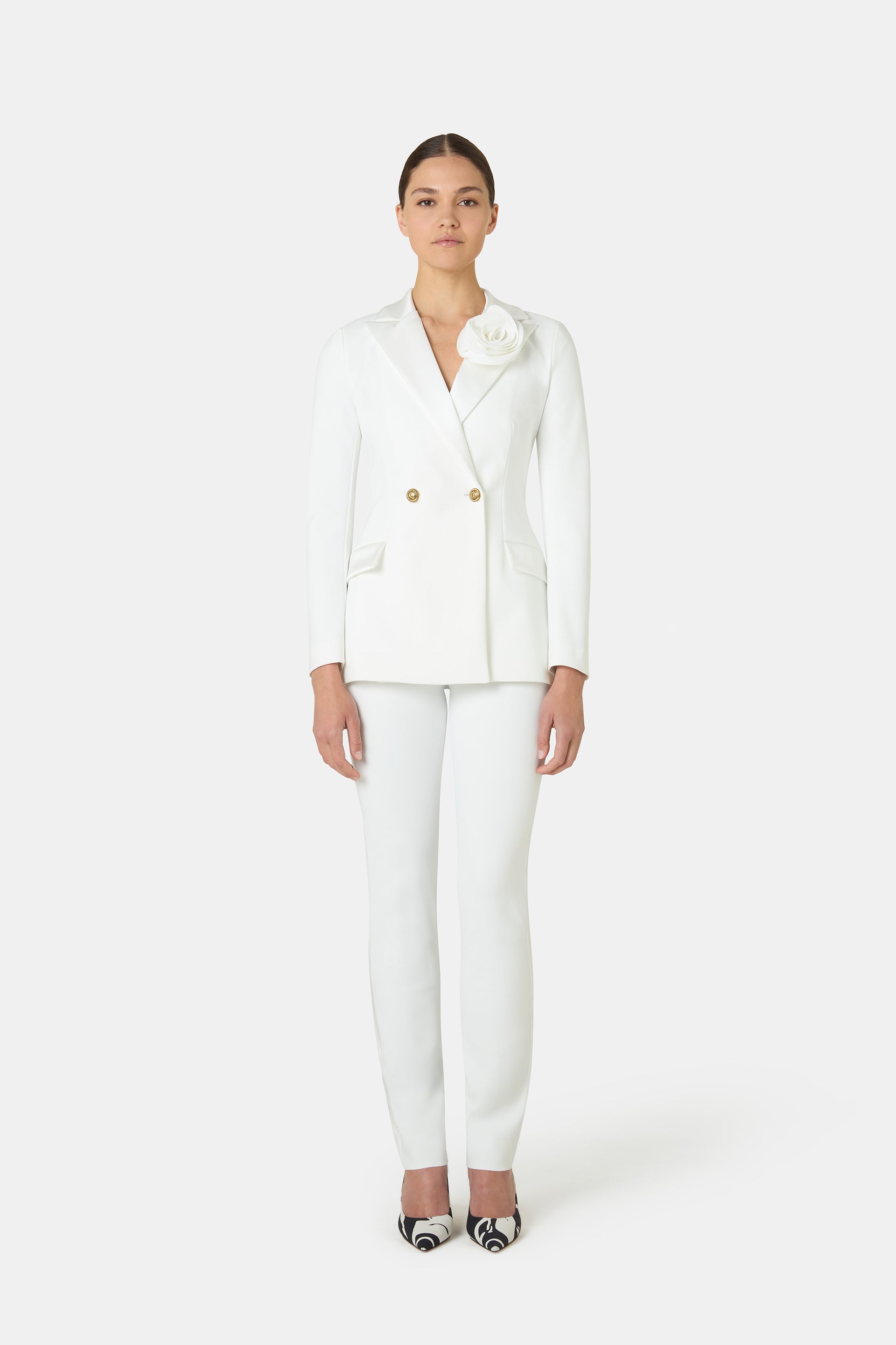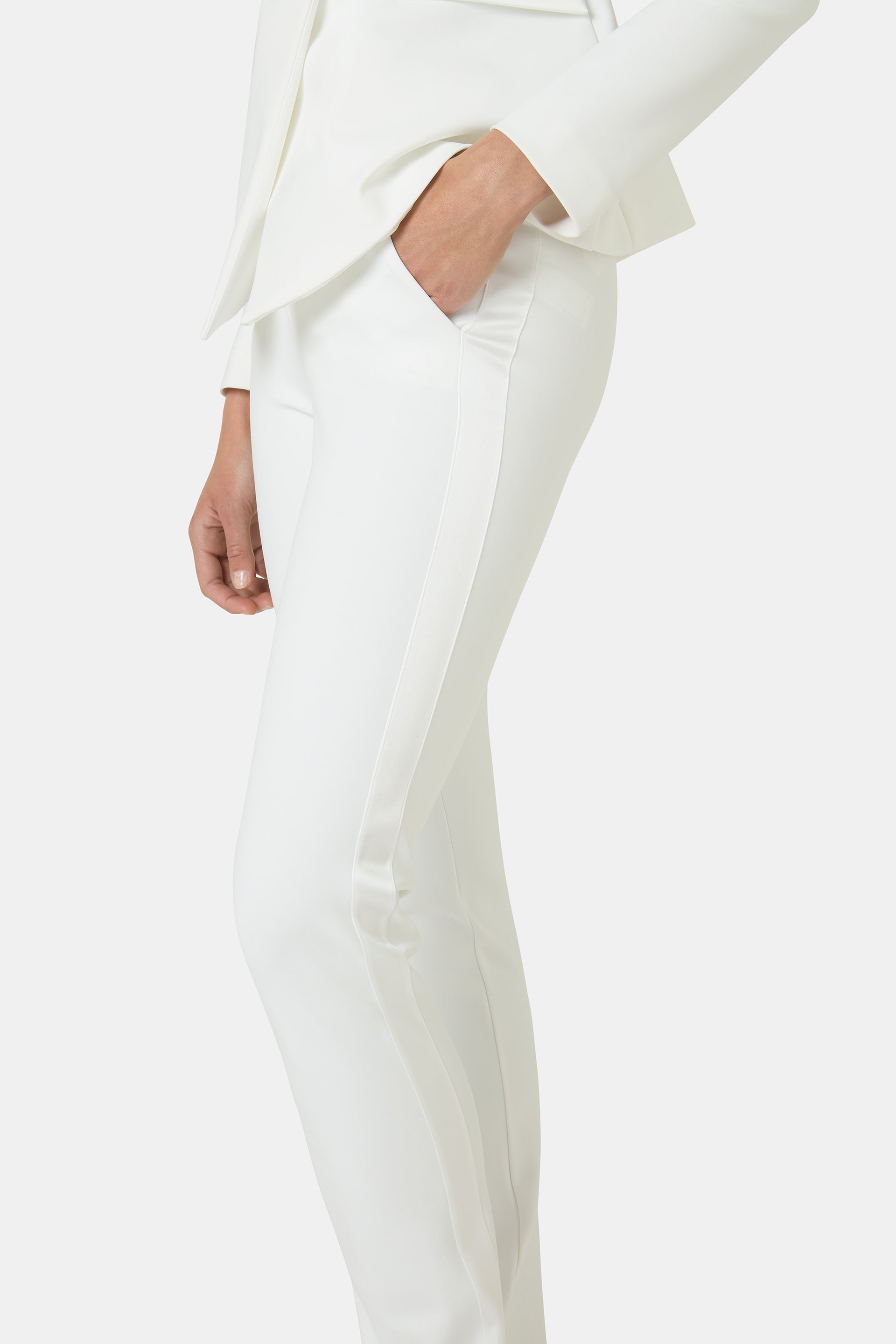 Classic, elegant and with a straight leg, the Mariajosé pants are embellished with a satin band at the side. When paired with the matching jacket, they create a sublime and sophisticated look.