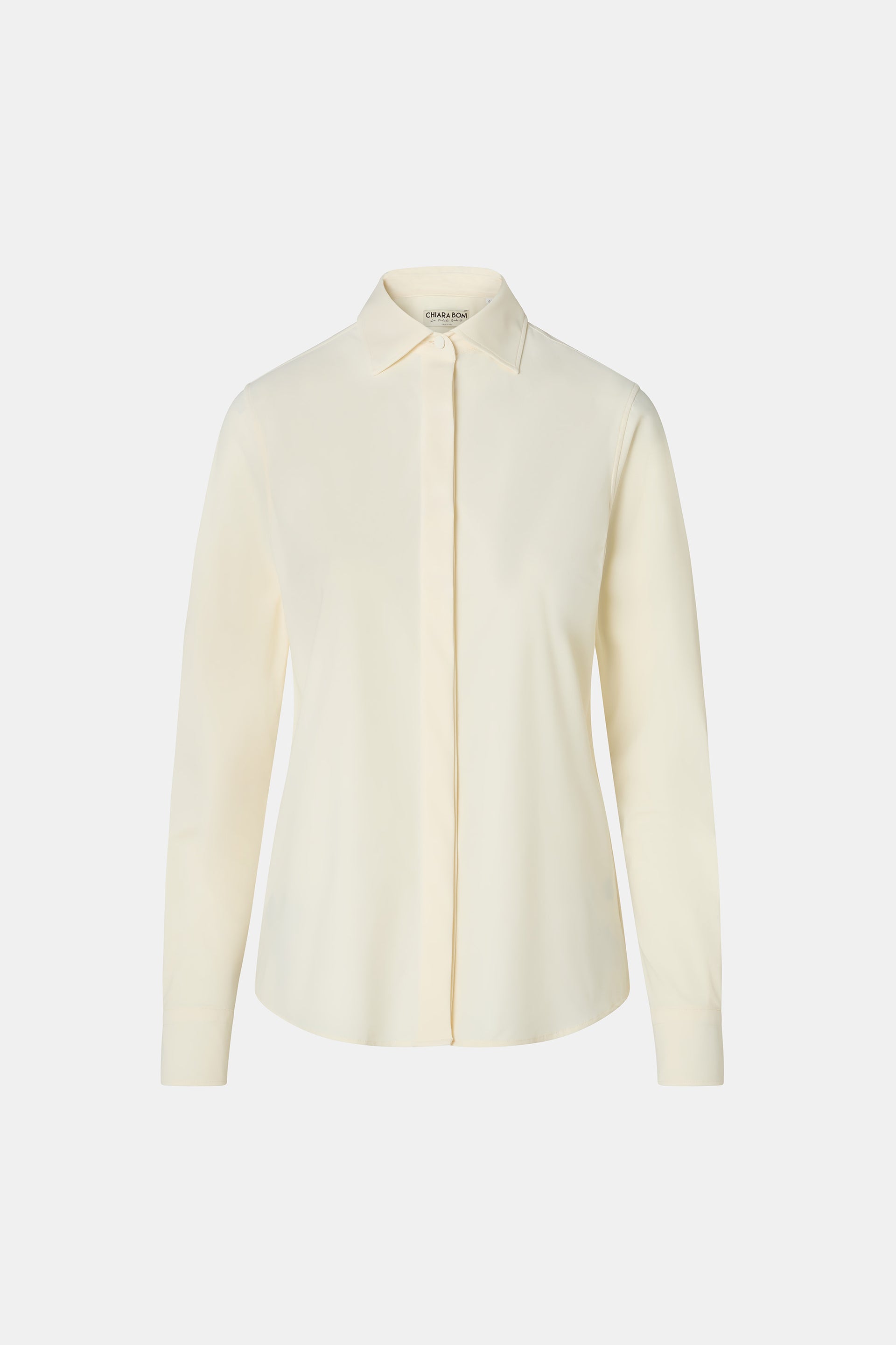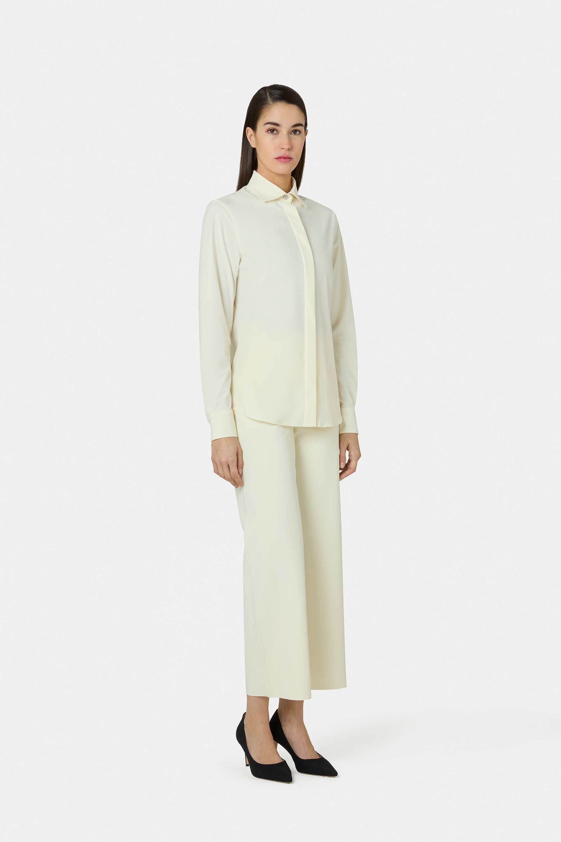The Rosy shirt is a versatile and classy piece that offers exceptional comfort and impeccable fit. Its classic button collar and concealed button placket make it perfect for creating formal looks or everyday outfits when paired with collection skirts and trousers. A must-have in every color variation.