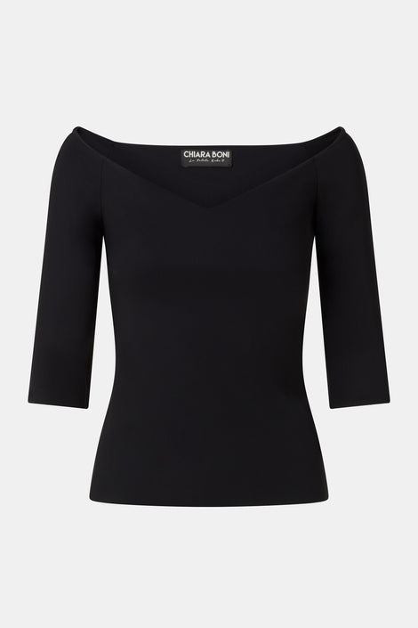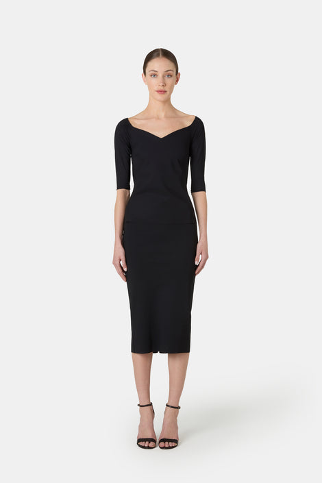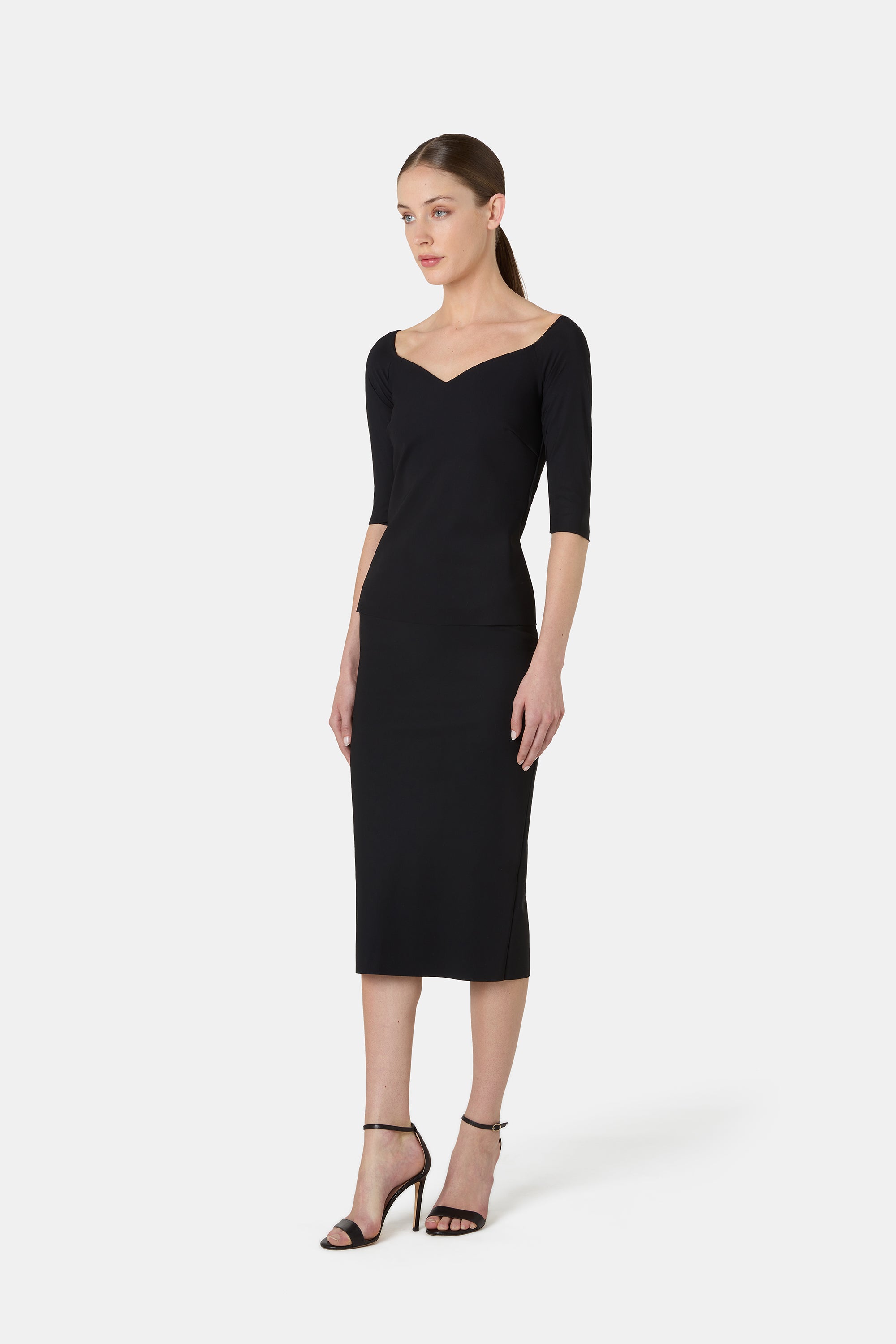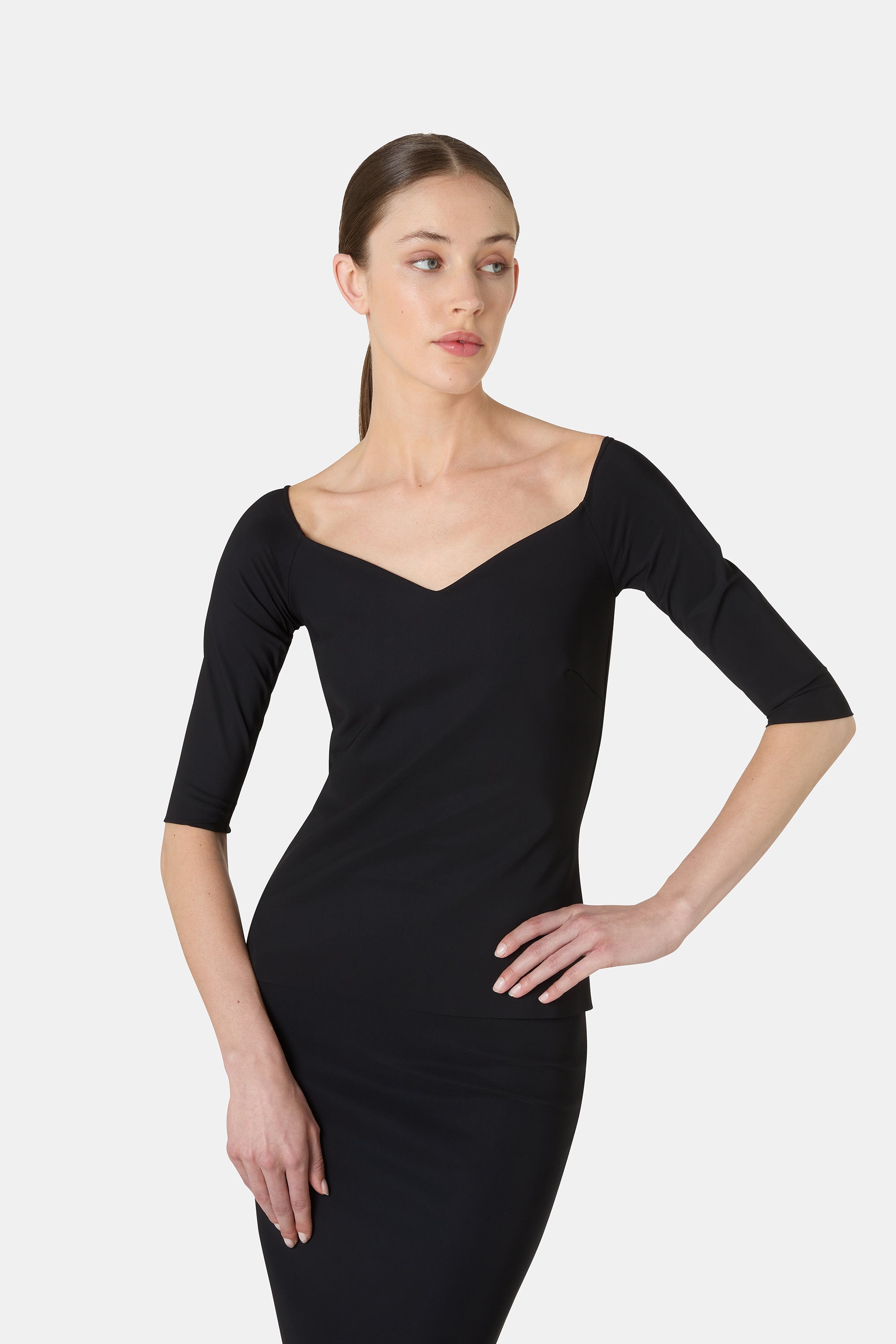 Simple, yet refined: the Saffron top is crafted in our signature Stretch Jersey with a heart neckline and a slim, comfortable fit. Pair it with our iconic Nuccia pants, or our Delfina pencil skirt for an elegant and modern look.