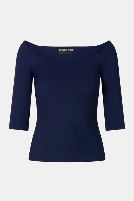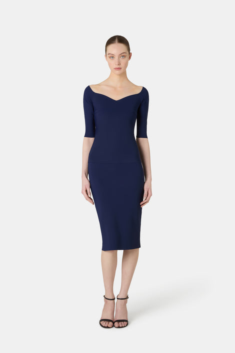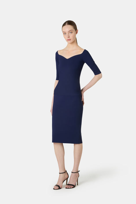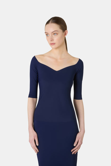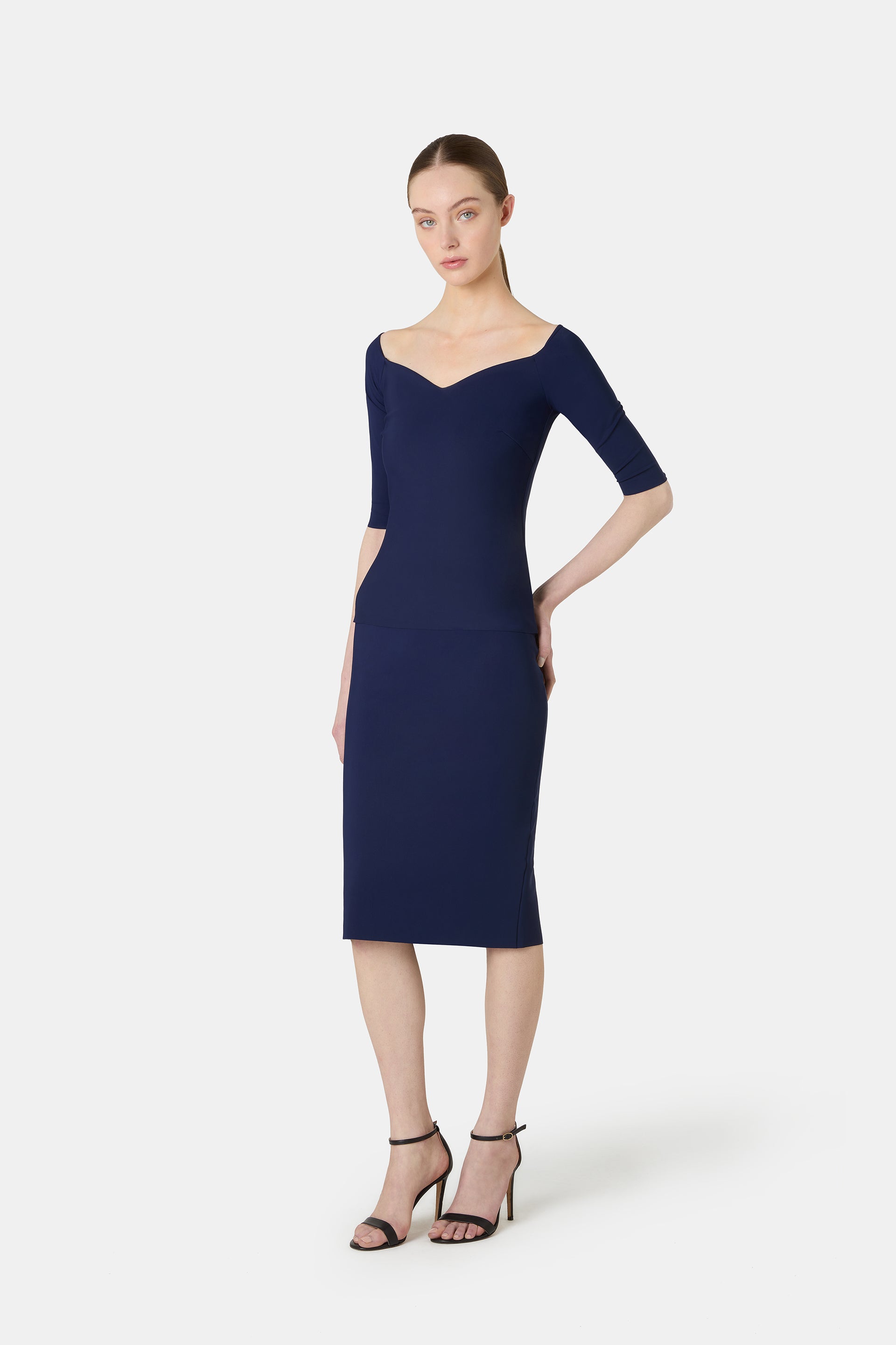 Simple, yet refined: the Saffron top is crafted in our signature Stretch Jersey with a heart neckline and a slim, comfortable fit. Pair it with our iconic Nuccia pants, or our Delfina pencil skirt for an elegant and modern look.