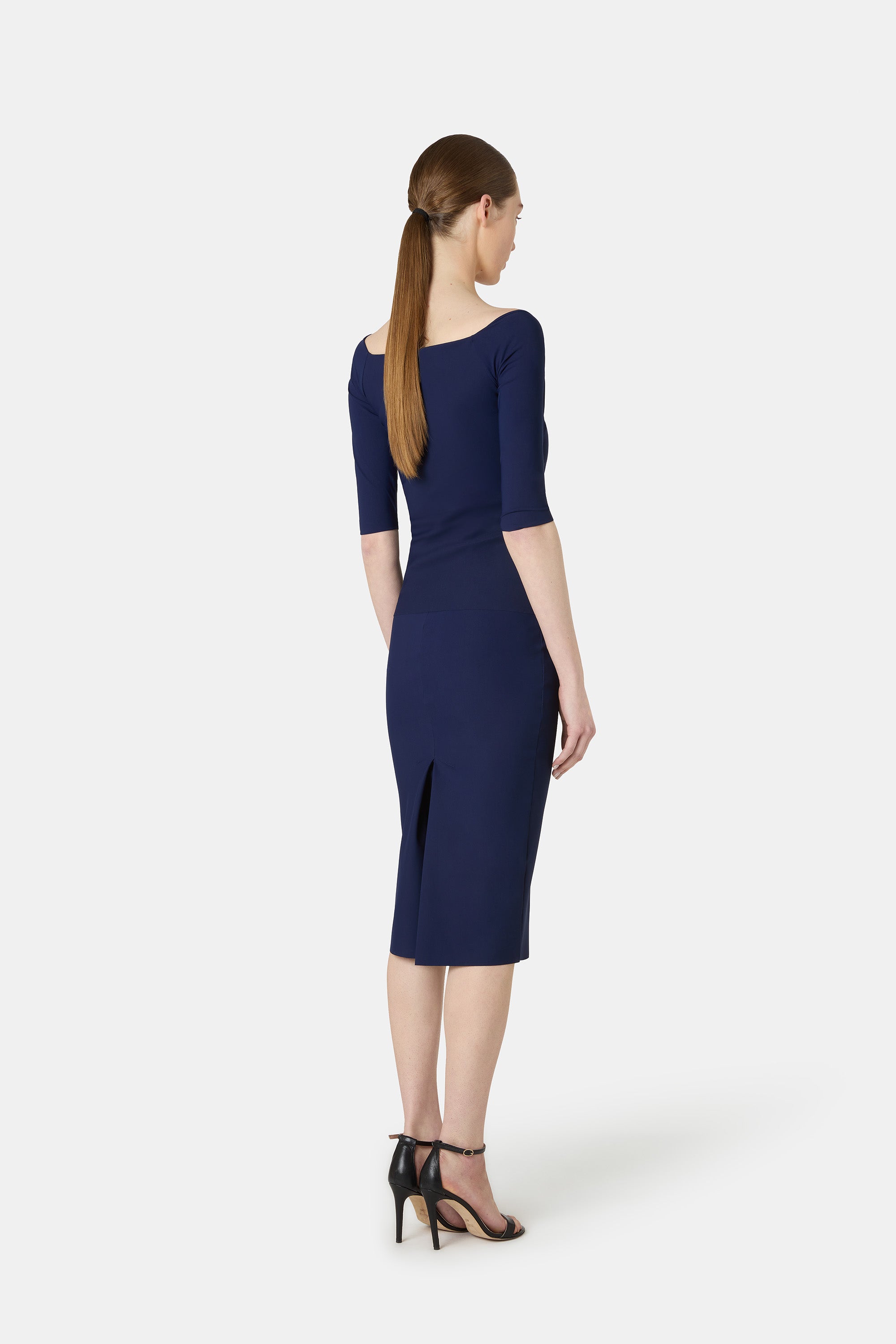 The Iconics: a refined selection crafted from the brand’s iconic stretch jersey, enhancing femininity with the perfect fit of CHIARA BONI collections. Cocktail dresses, suits, jumpsuits, and accessories in classic, timeless hues.