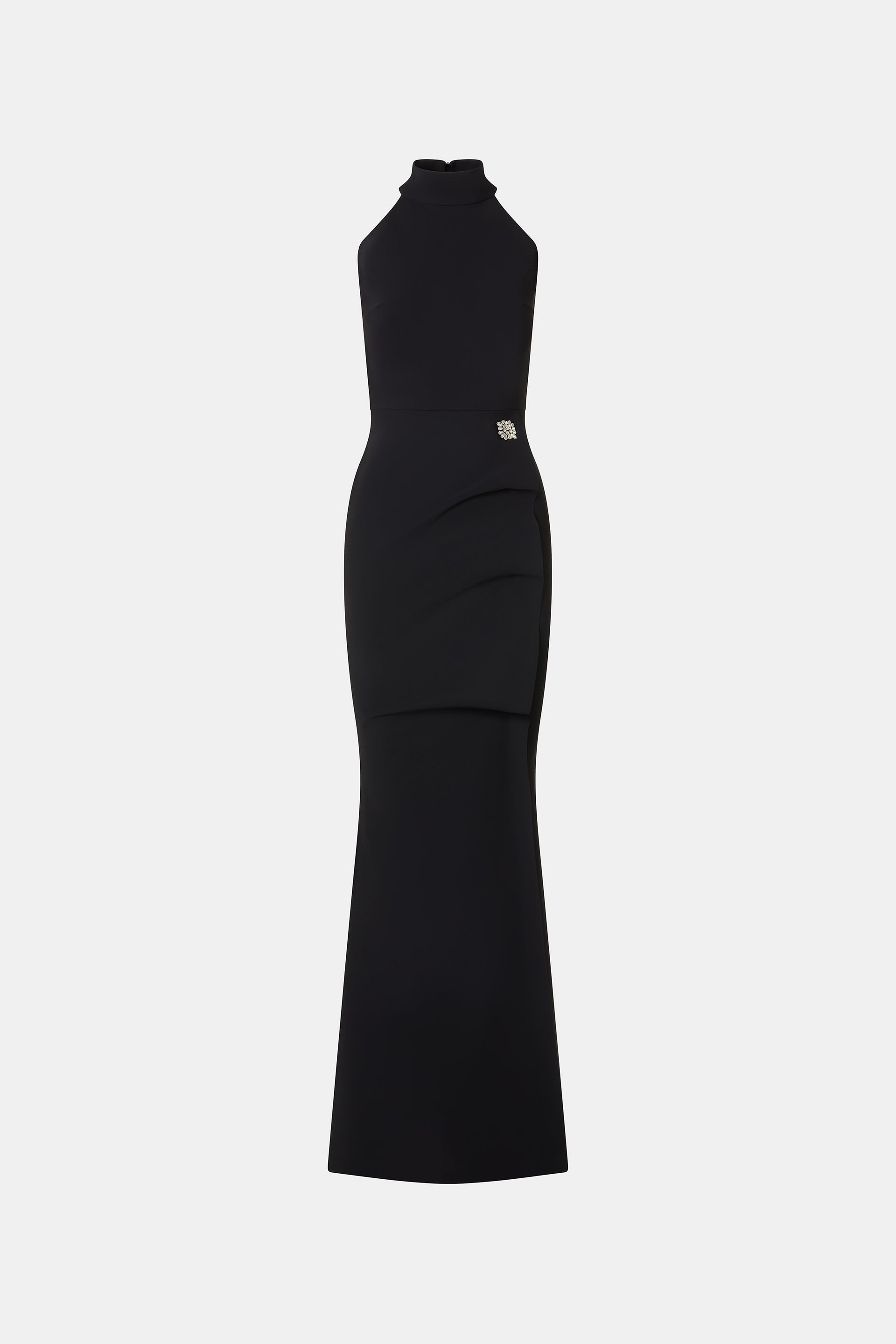 The Slavinka gown is an icon of contemporary minimalism: a total black gown with a halter neckline that interprets elegance through clean lines and an essential silhouette. Soft draping on the skirt and at the waist adds movement while subtly defining the figure. A timeless piece where style meets modernity.