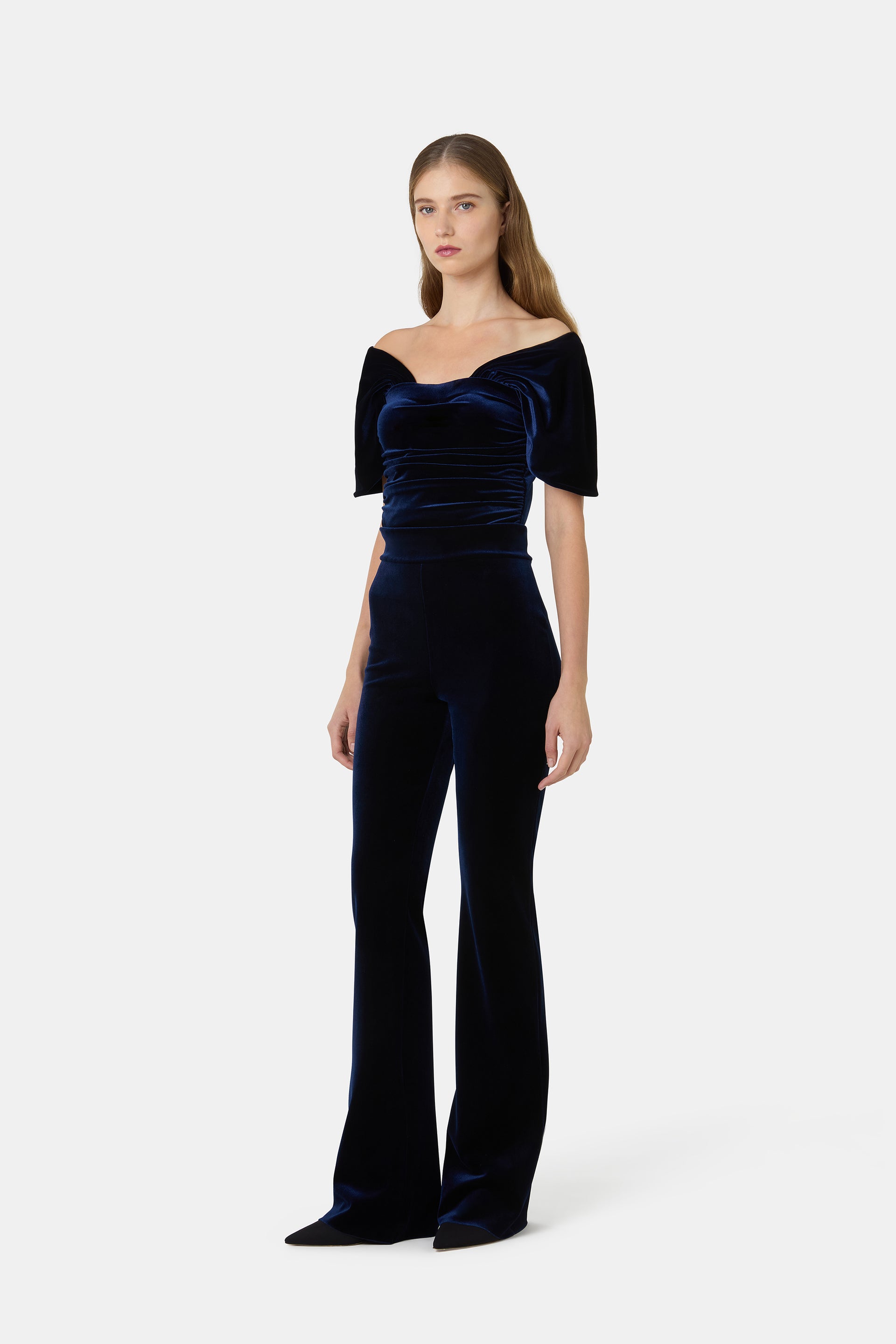 Elegance with ease. Our signature Venusette pants are luxurious and feminine, in every print and color! This high-waisted, fitted silhouette with a slight flare at the hem is an absolute must-have also in the Night Blue velvet version.